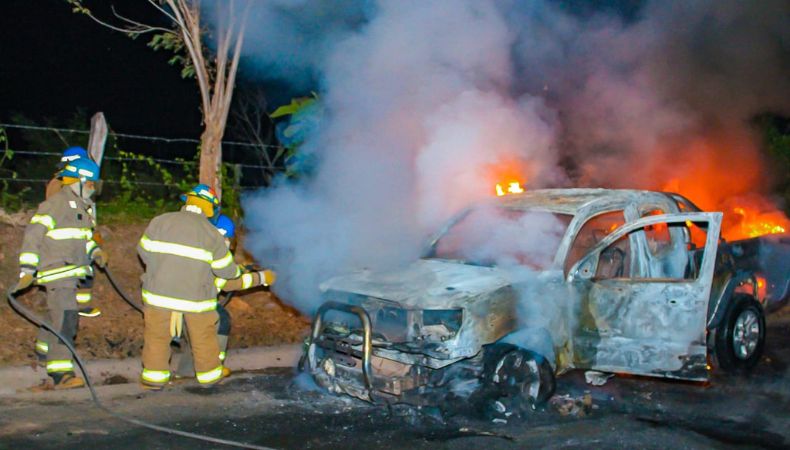 En las últimas horas, se han reportado incendios en vehículos, el primer caso ocurrió sobre la entrada y desvío hacia San Vicente.