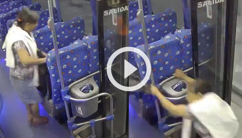 En redes sociales circula un video que ocurrió en Ecuador. En el clip se observa el momento exacto en el que una mujer cae de un autobús en movimiento. Durante los 20 segundos que dura la grabación se nota que la unidad de transporte colectivo hace una parada, donde varios pasajeros se bajan. Sin embargo, la puerta queda abierta.