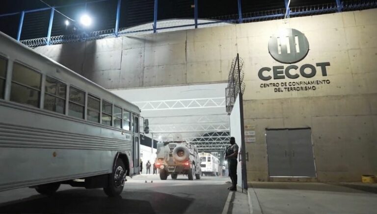 “Hoy llegaron a nuestro país los primeros 238 miembros de la organización criminal venezolana Tren de Aragua. Fueron trasladados de inmediato al CECOT, el Centro de Reclusión para Terroristas, por nosotros”, dijo el mandatario.