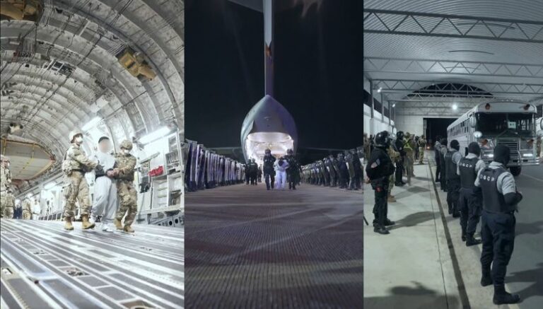 «En una exitosa operación antiterrorista con nuestros aliados en El Salvador, el ejército estadounidense transfirió a un grupo de 17 criminales violentos de las organizaciones Tren de Aragua y MS-13, incluyendo asesinos y violadores.