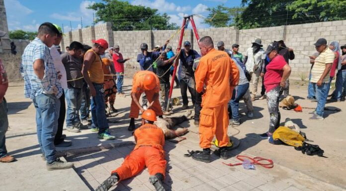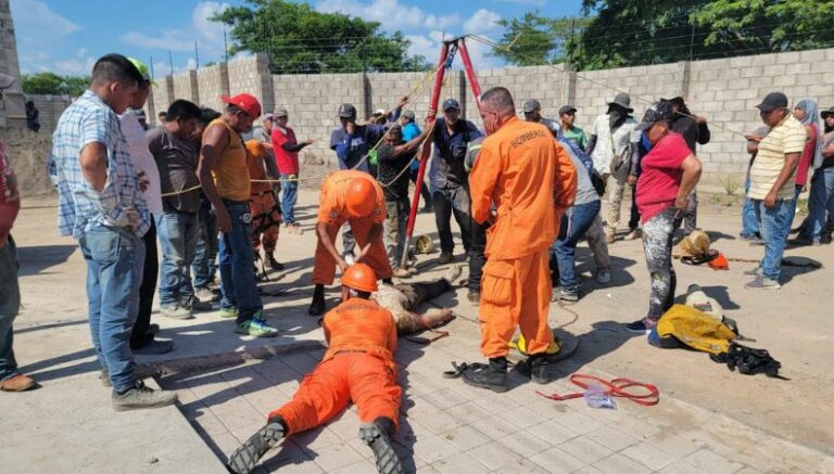Cuerpo de Bomberos de El Salvador desarrolla un rescate de cuatro trabajadores atrapados en una tubería de aguas negras en San Miguel.