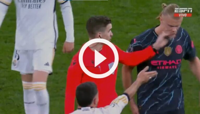 Uno de ellos fue Haaland, que en su camino para los camerinos se encontró al árbitro, quien al expresarse golpeó sin intención a Haaland, e hizo un gesto de dolor; pero no paso a más, en un notable estado reflexivo y de impotencia porque estaban abajo en el marcador, al final del primer tiempo.