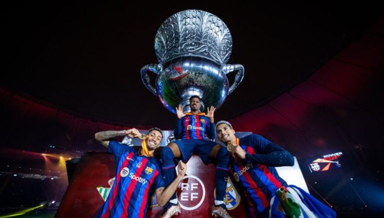 El Barca ganó la Supercopa de España al vencer (3-1) al Real Madrid en el Estadio Internacional King Fahd de Arabia Saudí. Curiosamente, este fue la copa de las primeras veces: