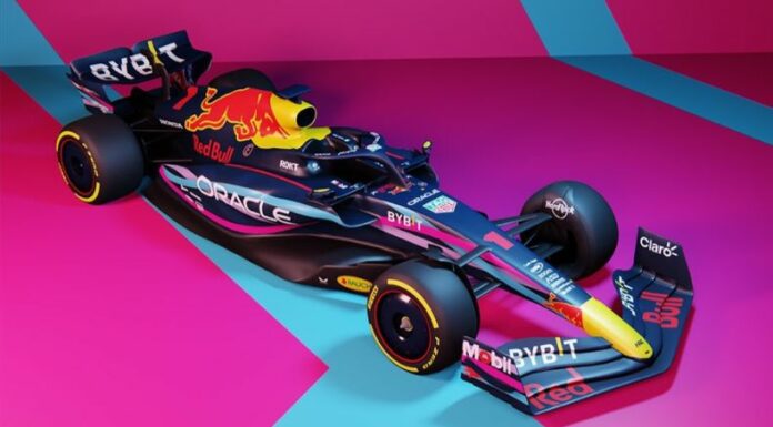 Red Bull reveló el nuevo diseño que tiene su coche (RB19) en honor al Gran Premio de Miami, el cual se desarrollará del viernes 5 de mayo al domingo 7. El mismo fue escogido por los fieles seguidores de la escudería austriaca a través de una encuesta.