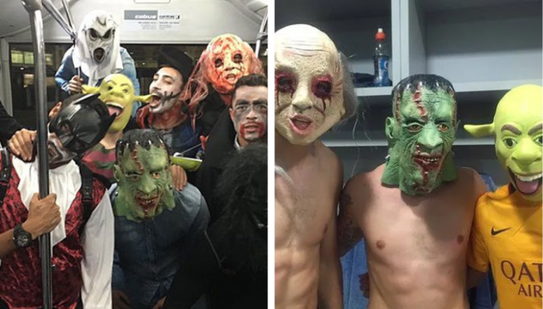 Aprovechando que esa misma noche era Halloween futbolistas como Adriano, Bartra, Luis Suárez, Neymar o Dani Alves, comandados por Gerard Piqué, se disfrazaron de varios personajes.