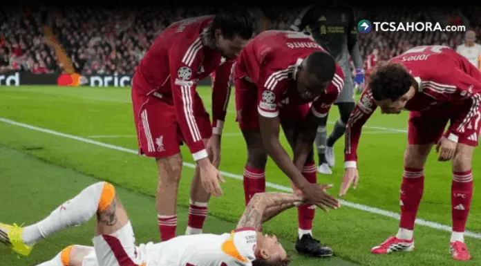 En el tramo final del encuentro disputado en Anfield, el jugador del equipo turco Noa Lang sufrió una horripilante lesión que enmudeció a todos los aficionados. El futbolista de 26 años se enganchó el dedo pulgar en una valla publicitaria tras perder el equilibrio y cayó al suelo.