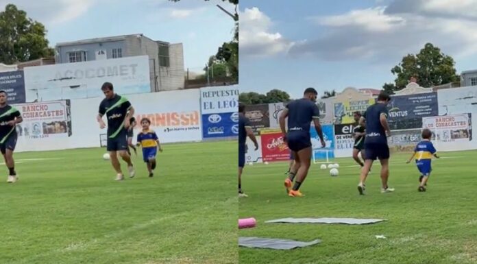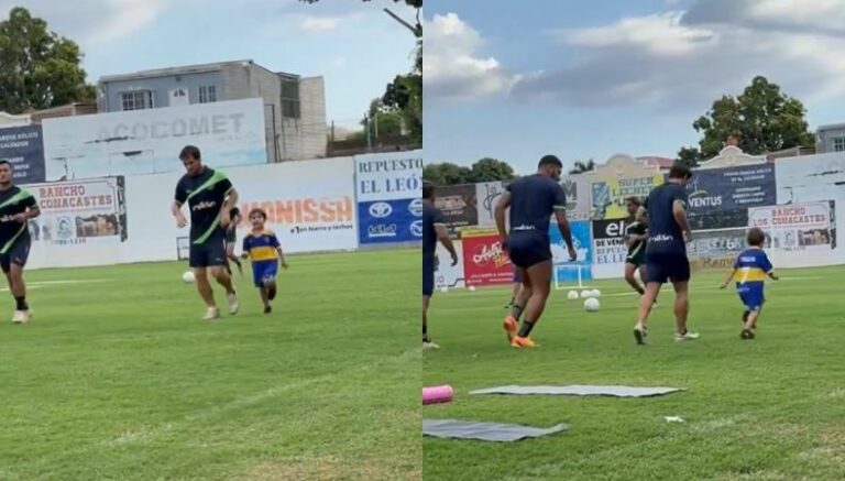 Por medio de la cuenta de X (antes Twitter), el combinado calero posteó un video de ambos ejercitándose. Allí se pudo notar que el infante portaba la camiseta del Boca.