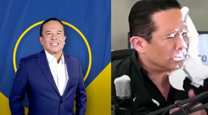 Por consiguiente, Gustavo Infante dijo “pues que venga el Rey Grupero, que venga y se siente”. En seguida, el influencer entró con un pastel en mano, el cual arrojó directamente a la cara del periodista.