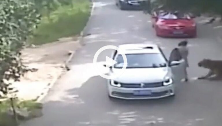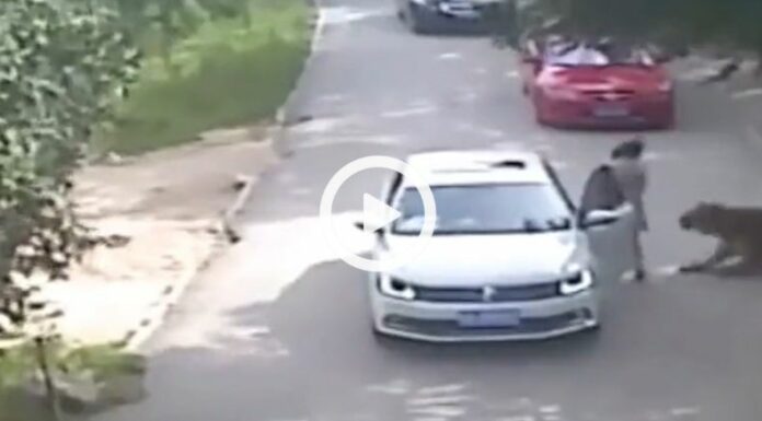 Las imágenes se han viralizado en redes sociales en los últimos años. Estas muestran cómo la dama se baja del auto en medio de una de las vías al interior del recinto de tigres siberianos.