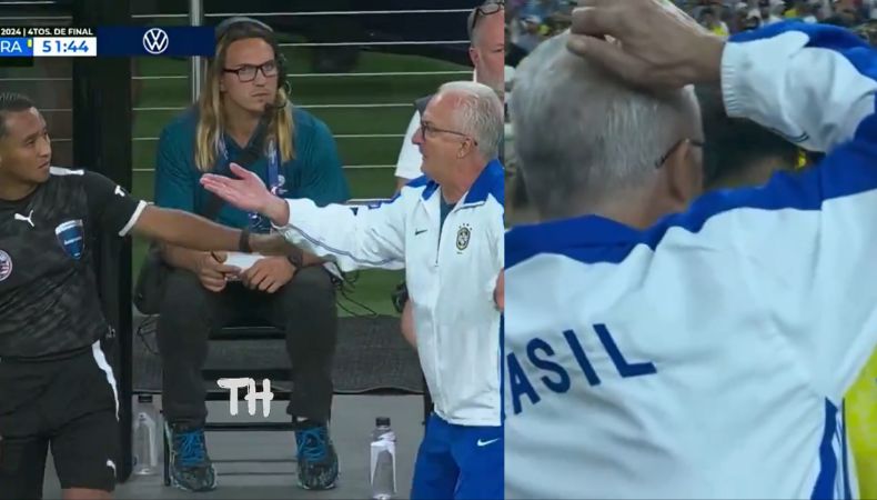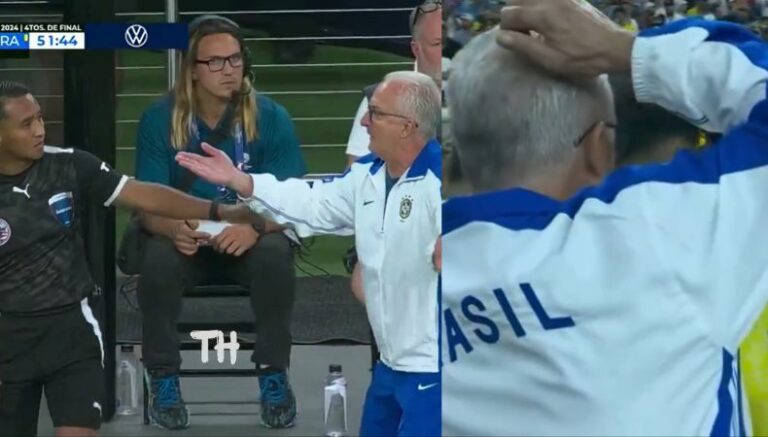 El DT de la Canarinha vivió momentos tensos durante el encuentro, insatisfecho con el trabajo del referí principal Darío Herrera. Al que le tocó lidiar con dichas expresiones fue el cuarto árbitro, Iván Barton. El salvadoreño manejó con mucha autoridad los desplantes del entrenador. Una de las protestas ocurrió al 52′ y el acalorado momento se viralizó en redes sociales.