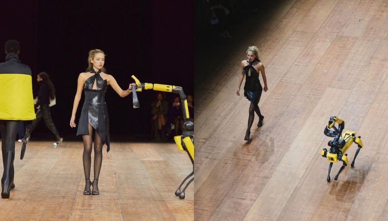 Las modelos se pudieron ver conviviendo con perros robots sobre la pasarela. Los cuales forman parte de Boston Dynamics, una empresa estadounidense dedicada a la ingeniería y robótica. Estos les llevaban sus bolsos, chaquetas y complementos de los atuendos que representaban; además, les quitaban algunas prendas para mostrar cada parte del conjunto.