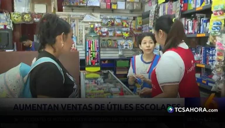 «La mercadería ha bajado todo en general, tanto colores, lapiceros, papelería, también los cuadernos y pinturas. La mayoría de precios han bajado… con eso los padres economizan sus bolsillos y las ventas han aumentado como un 10%, esperamos que se pueda incrementar el resto del mes», señaló Fátima Vásquez, comerciante del sector.