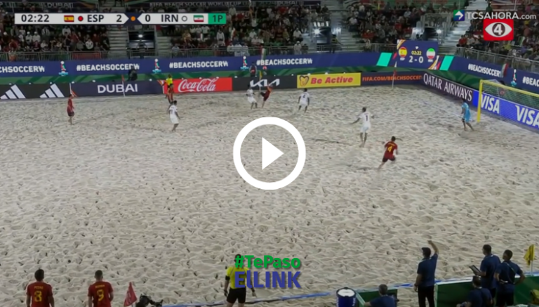 La selección de Fútbol playa de España le está ganando a la selección de Irán, pero miren ustedes el golazo que marcó.