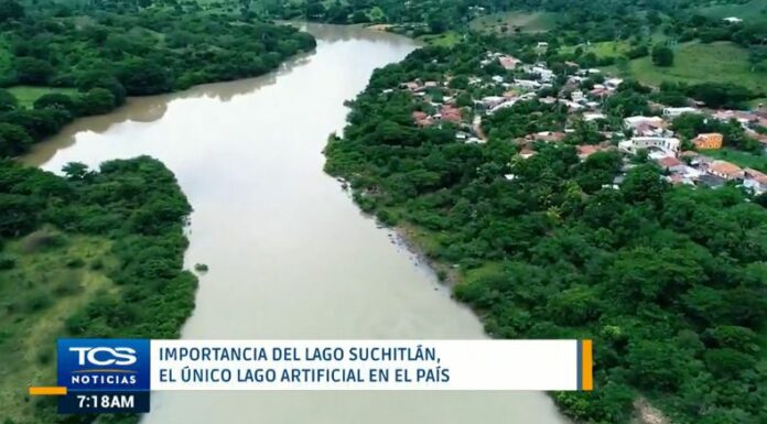 El lago Suchitlán, cuyo nombre se creó por Alejandro Coto, surgió tras mezclar el prefijo de Suchitoto y el sufijo de Cuscatlán. Es un lago artificial, cuya creación se remonta a los años entre 1973 y 1976, con la construcción de la Central Hidroeléctrica Cerrón Grande.