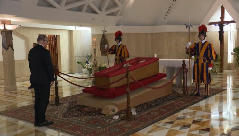 Funcionarios del Vaticano y autoridades de Italia rindieron homenaje este martes al Papa Francisco. Los restos del pontífice permanecieron toda la jornada en la capilla de Santa Marta, la residencia donde eligió vivir durante su papado.