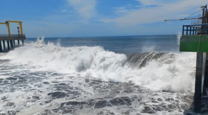En el muelle del Puerto de La Libertad, la Unidad de Guardavidas ha colocado perímetro de seguridad por oleaje alto y más rápido. También las lanchas que son utilizadas para la pesca han sido retiradas de la zona debido a los daños ocasionados por el fuerte oleaje.