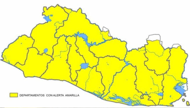 Protección Civil emitió Alerta Amarilla a nivel nacional. Esto, por la presencia de una vaguada, dejando sin efecto la Alerta Verde que se tenía en todo el país. Se ha emitido basado en el Informe Especial No 1, publicado este miércoles por el Observatorio de Amenazas del Ministerio de Medio Ambiente y Recursos Naturales (MARN), el cual indica que se espera la formación y desarrollo de chubascos y tormentas, entre moderadas y fuertes.