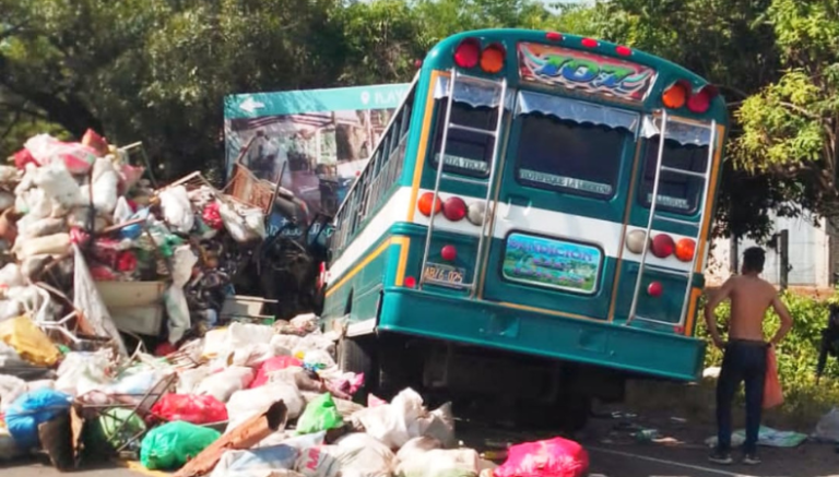 Se registra un accidente de tránsito entre un bus de la ruta 107 y un camión que transportaba basura. Esto ocurrió en la carretera Litoral, a la altura del desvío de la playa el Cocal, en el Puerto de la Libertad. Según las autoridades, en el percance, fallecieron dos personas y varias resultaron lesionadas, las cuales han sido trasladadas a un centro asistencial.