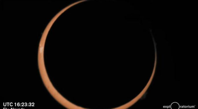 Se trata del eclipse solar anular, un fenómeno que solo ocurre cuando el Sol, la Luna y la Tierra están completamente alineados. Se le llama “eclipse solar anular” porque la Luna se encuentra en el punto más lejano de su órbita desde la Tierra.