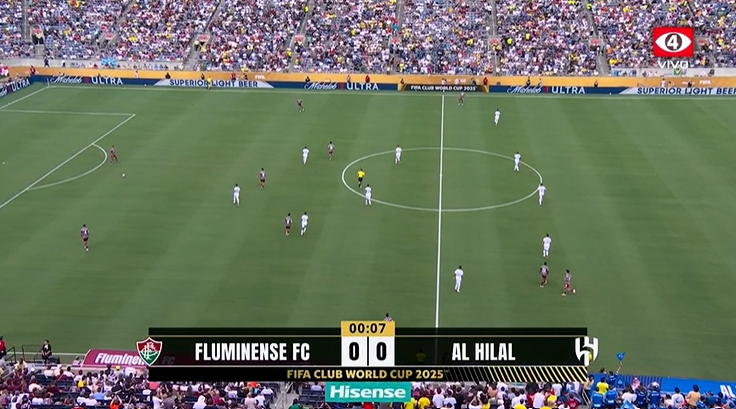 - ⏱️Minuto 5: Fluminense toma la iniciativa y busca generar peligro sobre la zona defensiva del Al Hilal.