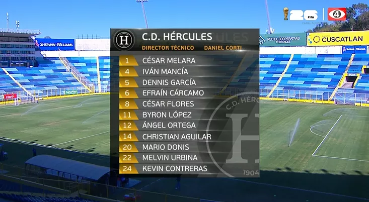 - ⏱️Minuto 46: Dos cambios en Hércules 🔁 ingresan José Posada y Luis Vásquez por Melvin Urbina y Christian Aguilar.