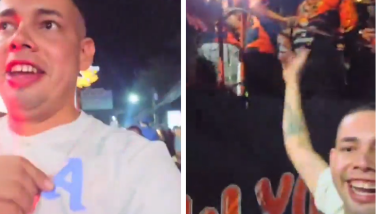 Un fanático de Alianza caminó frente a ellos, entonó cánticos del equipo de San Salvador mientras los migueleños lo bañaron en agua, el siguió grabando mientras la escena sucedía.