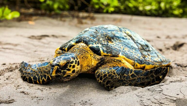 - Baule: es la única tortuga marina sin caparazón duro. Su nombre común en inglés significa espalda de cuero, lo cual hace referencia a la piel sin placas y suave, semejante al cuero que la cubre. Esta especie de tortuga es la más grande de todas las especies de tortugas marinas. Por lo general, mide 1,30 metros hasta 1,75 metros. Una hembra es capaz de pesar hasta 500 kg.
