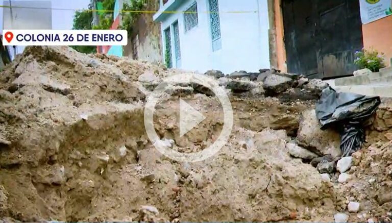 Enorme cárcava amenaza a varios habitantes en la Colonia 26 de enero en Mejicanos, el problema radica en una enorme cárcava que se ha generado en la calle, una situación que amenaza con seguir hundiéndose hasta llegar a las viviendas.