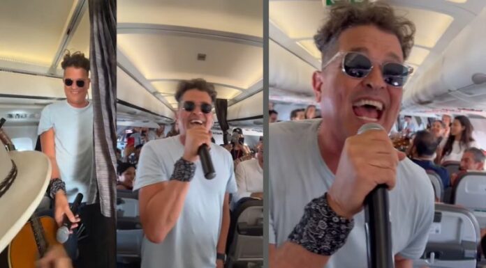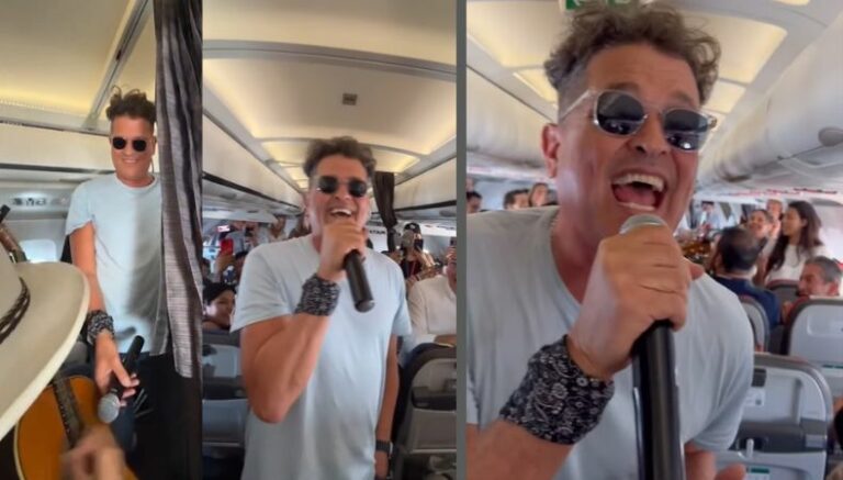 Posteriormente, el capitán del avión compartió a todas las personas la espectacular noticia de la presencia del artista y de inmediato le dio la bienvenida, dando inicio al espectáculo del colombiano.