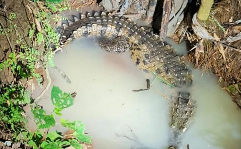 La Policía Nacional Civil (PNC) intervino en el hallazgo de un cocodrilo que fue encontrado dentro de una poza en el cantón San Antonio Arriba, de Santiago Nonualco, por habitantes de la zona. Los agentes inmovilizaron al reptil de 1.5 metros.