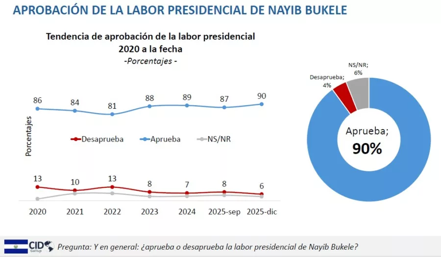 Te podría interesar: Encuesta CID Gallup: 87 % aprueba labor del presidente Bukele