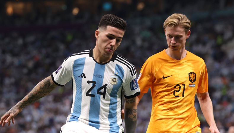 Enzo Fernández fue actor principal de la victoria de Argentina (3-0) frente a Croacia. El debutante en una Copa del Mundo no escondió su felicidad al terminar el choque. Durante esa algarabía, el exjugador de River Plate recordó sus raíces al dibujarse la banda roja del conjunto denominado “Millonario”. Hecho que enloqueció a parte de la hinchada presente en el Estadio “Lusail”.