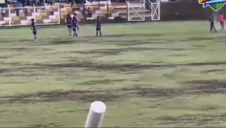 Un video difundido por redes sociales muestra como el relámpago impacta al minuto 23′, provocando que los jugadores caigan al césped.