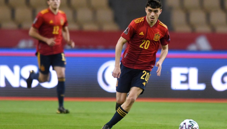 El extremo del Barca regresó a las canchas, para vestir la camiseta de su selección desde su último encuentro hace más de 2 años, en un partido contra de Ucrania. En el segundo tiempo, Carlos Soler brindó un pase a la izquierda para el disparo de Eder Sarabia, mismo que fue interceptado por la defensa, pero en el rechace Gavi aprovechó para anotar el 2-0, en el minuto 56.