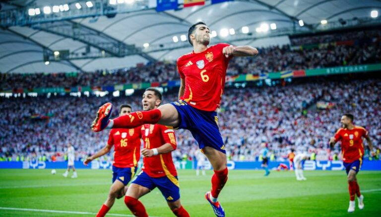 Pero antes de que se cumpliera el último minuto del segundo tiempo extra, España logró el tanto añorado para mandar al fondo de la red la pelotita, y dicho gol lo colocó Mikel Merino con un pase certero de Dani Olmo.