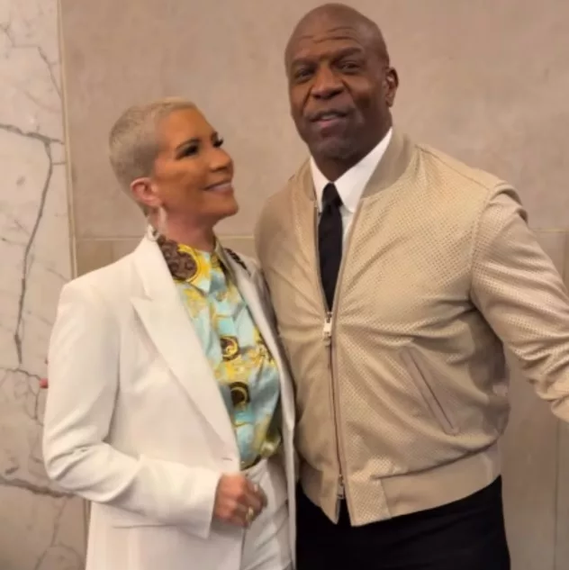 Durante la entrevista, Terry Crews la acompañó y reaccionó al verla escribir su nombre nuevamente después de tres años. La pareja, casada desde 1989, tiene cinco hijos.