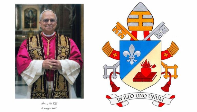 El nuevo Pontífice ha preferido mantener tanto su escudo episcopal como su lema In Illo uno unum (“En Él, que es uno, somos uno”). Palabras que provienen de una homilía de San Agustín sobre el Salmo 127 y expresan una visión eclesiológica profundamente unitaria: