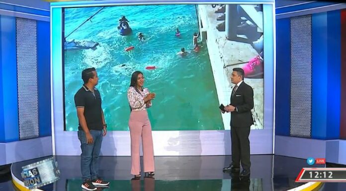 En la emisión del mediodía de Noticias 4 Visión, Fátima Barahona y Melvin Cruz narraron el momento exacto en que ocurrió el accidente. Ambos estaban en una embarcación cuando uno de los cables que la sostenía se desprendió y todos a bordo cayeron al agua.