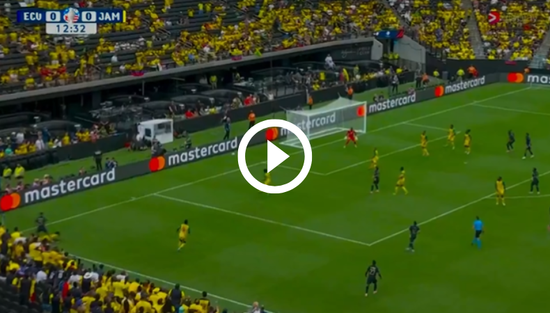 Piero Hincapié sorprende al arquero con un centro cerrado en el inicio del partido para anotar uno de los que desde ya se apunta para ser de los mejores goles de la Copa América 2024.