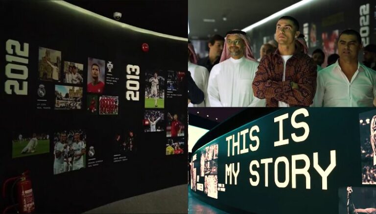 En cuanto al museo de Ronaldo, a su entrada se expone una estatua del jugador de Al-Nassr. A medida se avanza, se pueden disfrutar videos durante sus etapas con diferentes clubes, como su debut en laa filas del Sporting de Lisboa, ascenso a la fama con el Manchester United y consagración vistiendo la camiseta del Real Madrid. Además, cuenta con diversas copias de sus principales trofeos ganados.