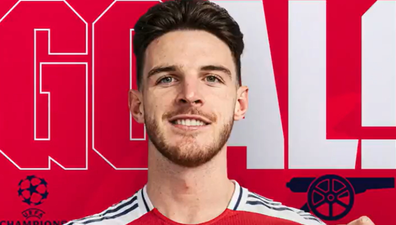 Declan Rice anotó con un golazo de tiro libre el primer gol de la serie de cuartos de final entre el Arsenal y el Real Madrid.