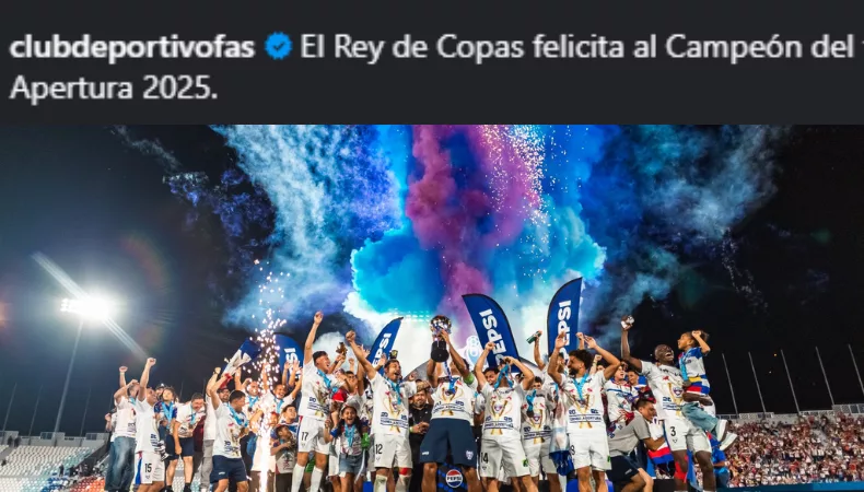 «El Rey de Copas felicita al Campeón del torneo Apertura 2025», publicó el equipo santaneco tras la final del partido.