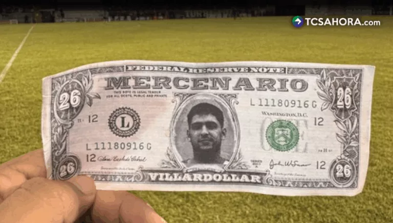 «MERCENARIO, junto al número 26 y la leyenda de VILLARDOLLAR», se leía en los billetes arrojados al terreno de juego.
