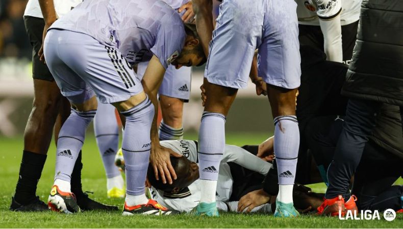 El partido entre Valencia y Real Madrid dejó un sinfín de incidencias. Una de las cuales fue la espantosa lesión que sufrió el francés Mouctar Diakhaby. Fue al minuto 87 cuando una acción en ataque del equipo merengue terminó con una caída de Tchouaméni sobre la pierna de su rival.