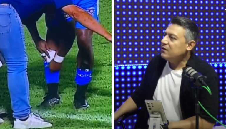 A la media hora de juego, las cámaras de Canal 4 captaron al trinitense quitándose sus tobilleras para colocarse debajo de la calceta un particular elemento: vasos desechables.