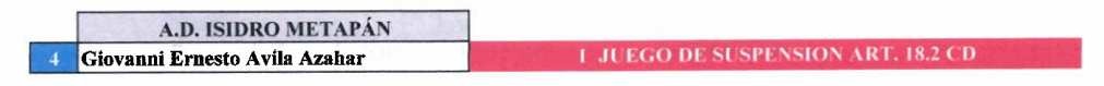 César Flores de CD Hércules recibió un juego de sanción al acumular su quinta tarjeta amarilla en el duelo ante Metapán. Además, el auxiliar técnico José Rodríguez también recibió un juego de suspensión.