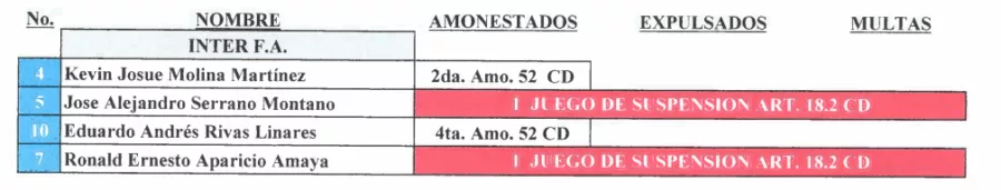 En Inter FA, José Serrano y Ronald Aparicio se perderá un partido por sanción.