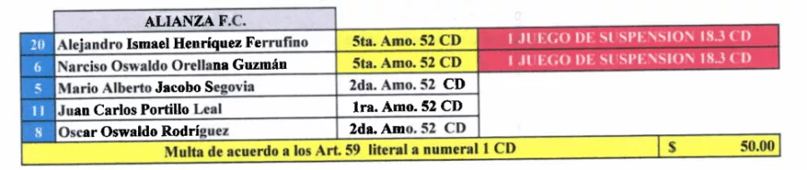 La Comisión Disciplinaria de la Federación Salvadoreña de Fútbol (FESFUT) dio a conocer el listado de jugadores sancionados para la jornada 20 del Torneo Apertura 2025.