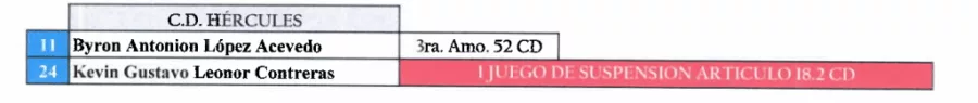 Mientras que Kevin Contreras se perderá el próximo partido de CD Hércules por sanción.