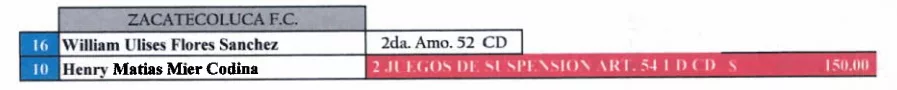 El futbolista de Zacatecoluca FC, Matías Mier recibió dos juegos de sanción tras su expulsión el pasado miércoles ante CD Hércules.